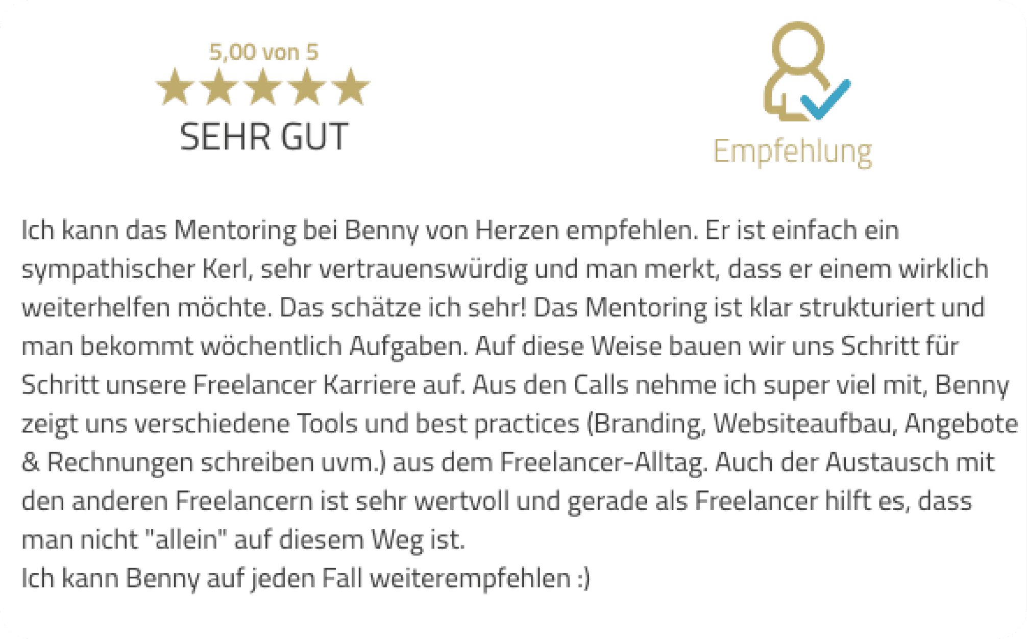 Einige Teilnehmer haben in der ersten Woche ihren Stundensatz erhöht oder einen neuen Kunden gewonnen. Das System ist so gebaut, dass du es direkt umsetzt – nicht erst wenn du alles geschaut hast.